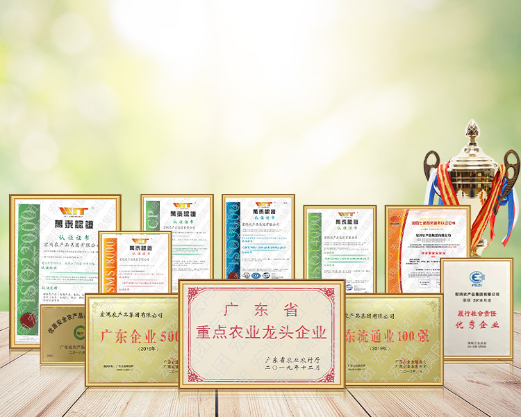 宏鴻農產品集團始于1997年,是一家集生態農業基地的開發及建設、基地直供食材一站式配送、農產品冷鏈物流、單品大宗貿易、凈菜加工、互聯網+農產品為一體的集團企業。每天可穩定供應從基地源頭直達餐桌的各類蔬菜、肉類、禽類、水產、冷凍制品、水果、海鮮、糧油、調味品、副食品等23000多個品種;歷年來成功服務各級行政事業單位、軍隊、各類企業、大中小學校幼兒園、醫院、中大型餐廳客戶達22000多家。公司每年供應的蔬果逾千萬噸,公司每年供應的豬牛羊逾100萬頭。多年來,集團始終堅持以食品安全為立身之本,以為廣大民眾提供安全、放心的健康食材為己任,不斷強化食材從田間到餐桌的全流程質量管控,得到各級政府和社會大眾的廣泛認可。